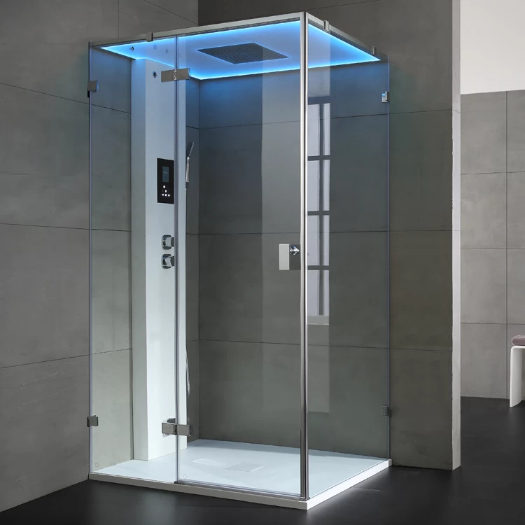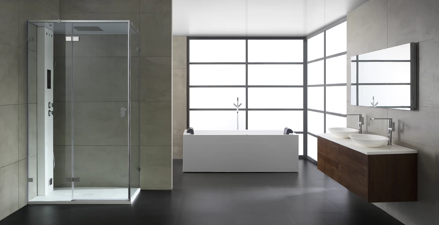 Bei dieser Dampfdusche der F15-Serie haben wir die Dusche auf das Notwendige reduziert. Das Ergebnis kann sich sehen lassen: Keine störenden Rückwände, schlichte Eleganz und ein Himmel der einen zu den Sternen greifen lässt. Zusätzlich wird die Reinigung im Inneren durch glasbündige Scharniere erleichtert. Einfach mit dem Abzieher darüberwischen und fertig.
