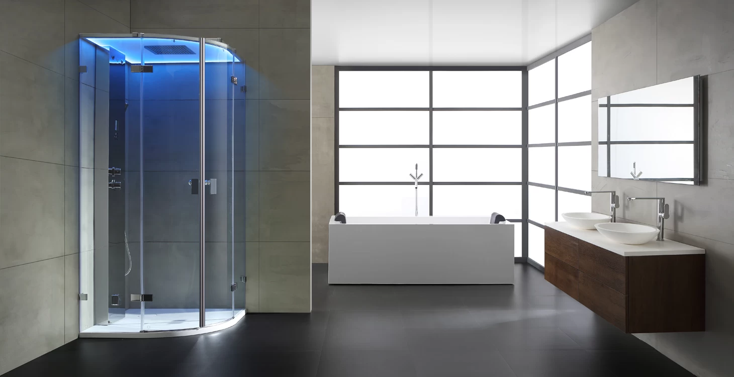 Bei dieser Dampfdusche der F15-Serie haben wir die Dusche auf das Notwendige reduziert. Das Ergebnis kann sich sehen lassen: Keine störenden Rückwände, schlichte Eleganz und ein Himmel der einen zu den Sternen greifen lässt. Zusätzlich wird die Reinigung im Inneren durch glasbündige Scharniere erleichtert. Einfach mit dem Abzieher darüberwischen und fertig.