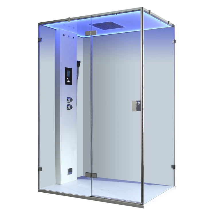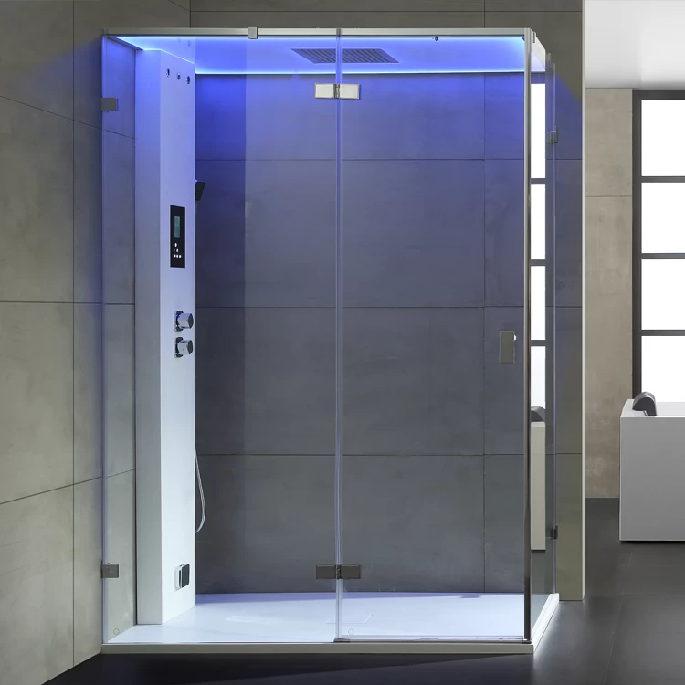 Bei dieser Dampfdusche der F15-Serie haben wir die Dusche auf das Notwendige reduziert. Das Ergebnis kann sich sehen lassen: Keine störenden Rückwände, schlichte Eleganz und ein Himmel der einen zu den Sternen greifen lässt. Zusätzlich wird die Reinigung im Inneren durch glasbündige Scharniere erleichtert. Einfach mit dem Abzieher darüberwischen und fertig.