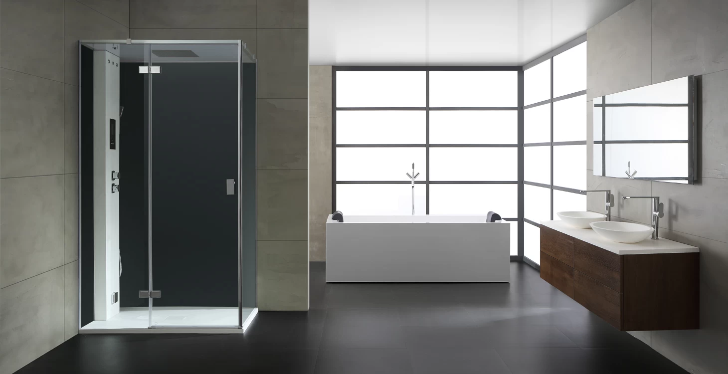 Bei dieser Dampfdusche der F15-Serie haben wir die Dusche auf das Notwendige reduziert. Das Ergebnis kann sich sehen lassen: Keine störenden Rückwände, schlichte Eleganz und ein Himmel der einen zu den Sternen greifen lässt. Zusätzlich wird die Reinigung im Inneren durch glasbündige Scharniere erleichtert. Einfach mit dem Abzieher darüberwischen und fertig.