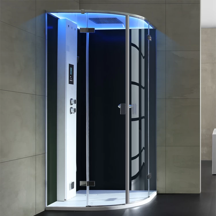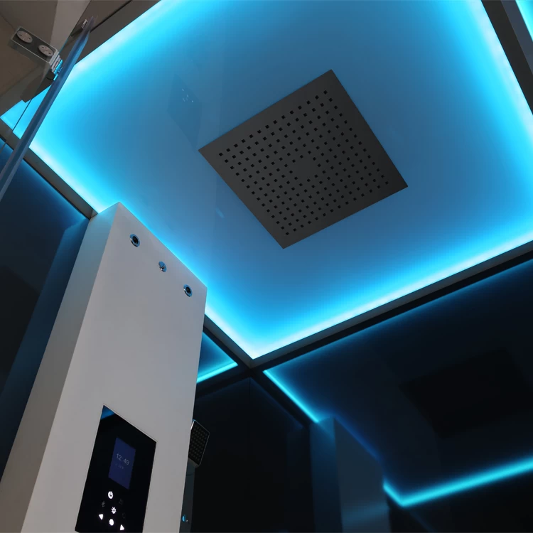 Bei dieser Dampfdusche der F15-Serie haben wir die Dusche auf das Notwendige reduziert. Das Ergebnis kann sich sehen lassen: Keine störenden Rückwände, schlichte Eleganz und ein Himmel der einen zu den Sternen greifen lässt. Zusätzlich wird die Reinigung im Inneren durch glasbündige Scharniere erleichtert. Einfach mit dem Abzieher darüberwischen und fertig.