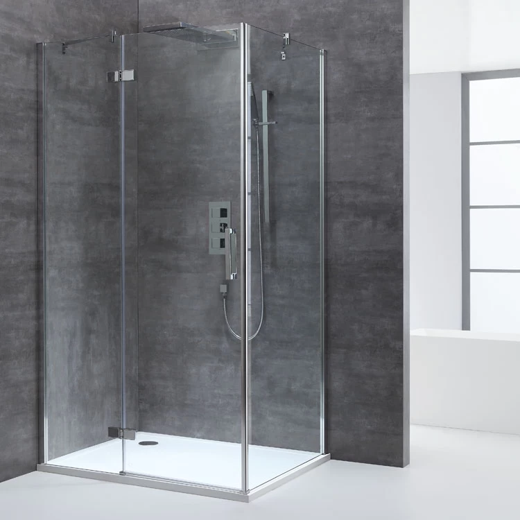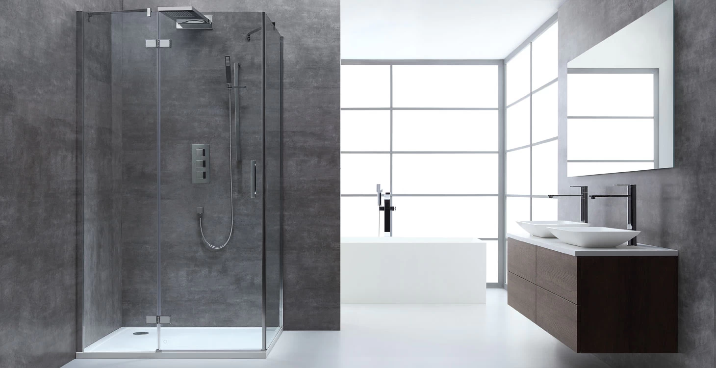Bei einer Dusche sind die Beschläge von besonderer Bedeutung, da die Qualität genau davon abhängt. Wir haben uns insbesondere bei der Entwicklung unserer Scharniere an Ihren Wünschen orientiert. Unsere Beschläge sind innenseitig am Glas flächenbündig anliegend. Das sieht nicht nur gut aus, sondern erleichtert die Reinigung der Glasdusche wesentlich.