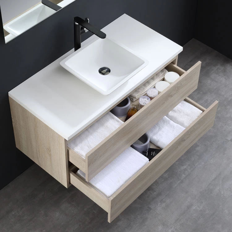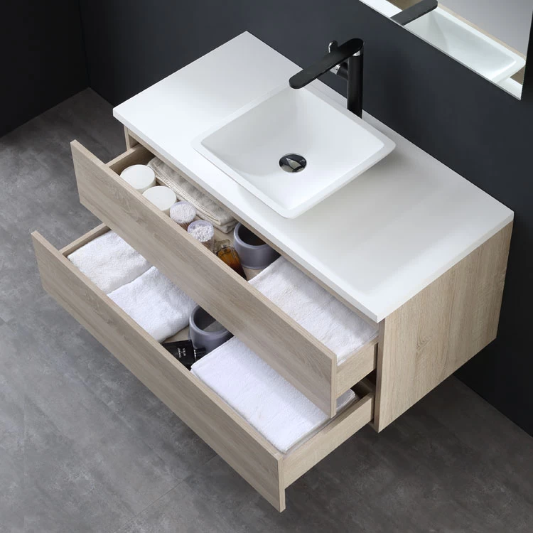 Der Waschtisch wird aus hochwertigem MDF (mitteldichte Holzfaserplatte) in einer Stärke von 18mm gefertigt. Die Produktion erfolgt auf extra dafür in Deutschland angefertigten Präzisionsmaschinen. Das Ergebnis ist eine optimale Oberfläche, ins besondere an den Kanten. Unsere Schubladen sind mit hochwertige SoftClose-Einzügen ausgestattet. Je nach Wunsch liefern wir Ihr neues Badmöbelset entweder modern in 3 Lackfarben (schwarz, dunkelgrau und weiß), oder klassisch in den Holzfarben Eiche hell und dunkel aus.
