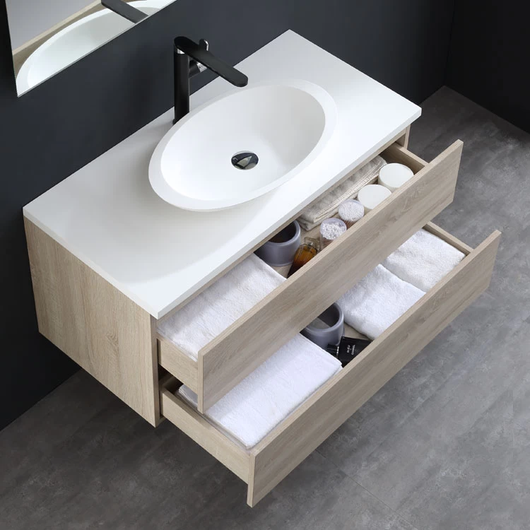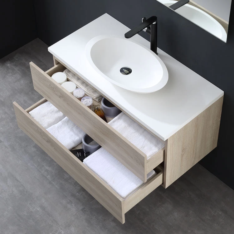 Der Waschtisch wird aus hochwertigem MDF (mitteldichte Holzfaserplatte) in einer Stärke von 18mm gefertigt. Die Produktion erfolgt auf extra dafür in Deutschland angefertigten Präzisionsmaschinen. Das Ergebnis ist eine optimale Oberfläche, ins besondere an den Kanten. Unsere Schubladen sind mit hochwertige SoftClose-Einzügen ausgestattet. Je nach Wunsch liefern wir Ihr neues Badmöbelset entweder modern in 3 Lackfarben (schwarz, dunkelgrau und weiß), oder klassisch in den Holzfarben Eiche hell und dunkel aus.
