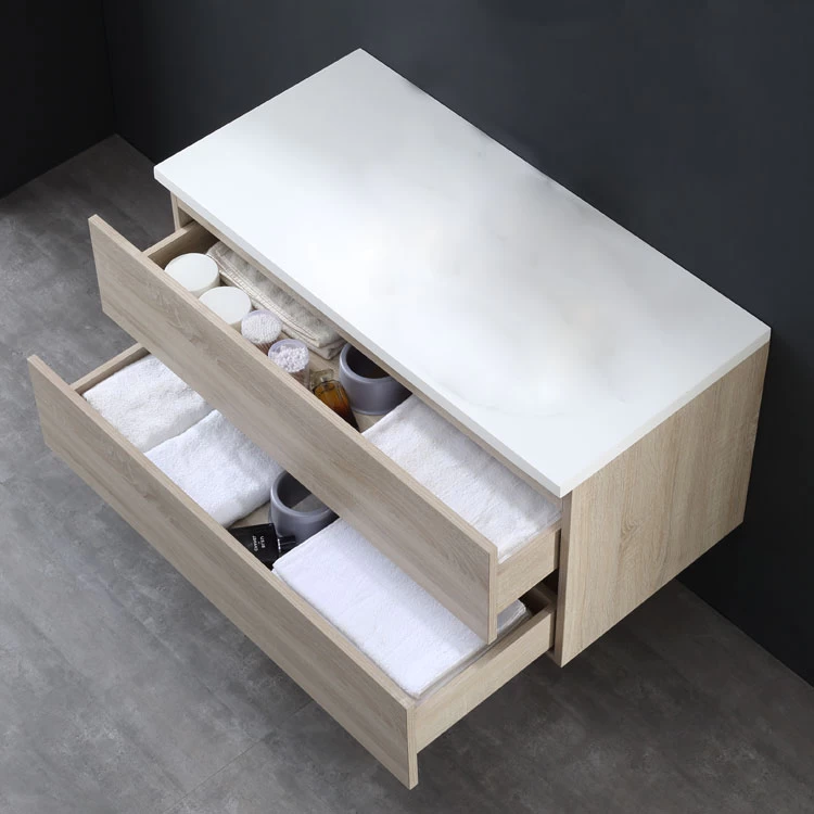 Der Waschtisch wird aus hochwertigem MDF (mitteldichte Holzfaserplatte) in einer Stärke von 18mm gefertigt. Die Produktion erfolgt auf extra dafür in Deutschland angefertigten Präzisionsmaschinen. Das Ergebnis ist eine optimale Oberfläche, ins besondere an den Kanten. Unsere Schubladen sind mit hochwertige SoftClose-Einzügen ausgestattet. Je nach Wunsch liefern wir Ihr neues Badmöbelset entweder modern in 3 Lackfarben (schwarz, dunkelgrau und weiß), oder klassisch in den Holzfarben Eiche hell und dunkel aus.