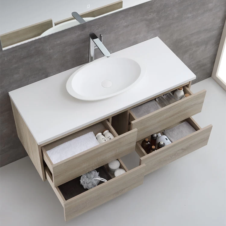 Der Waschtisch wird aus hochwertigem MDF (mitteldichte Holzfaserplatte) in einer Stärke von 18mm gefertigt. Die Produktion erfolgt auf extra dafür in Deutschland angefertigten Präzisionsmaschinen. Das Ergebnis ist eine optimale Oberfläche, ins besondere an den Kanten. Unsere Schubladen sind mit hochwertige SoftClose-Einzügen ausgestattet. Je nach Wunsch liefern wir Ihr neues Badmöbelset entweder modern in 3 Lackfarben (schwarz, dunkelgrau und weiß), oder klassisch in den Holzfarben Eiche hell und dunkel aus.