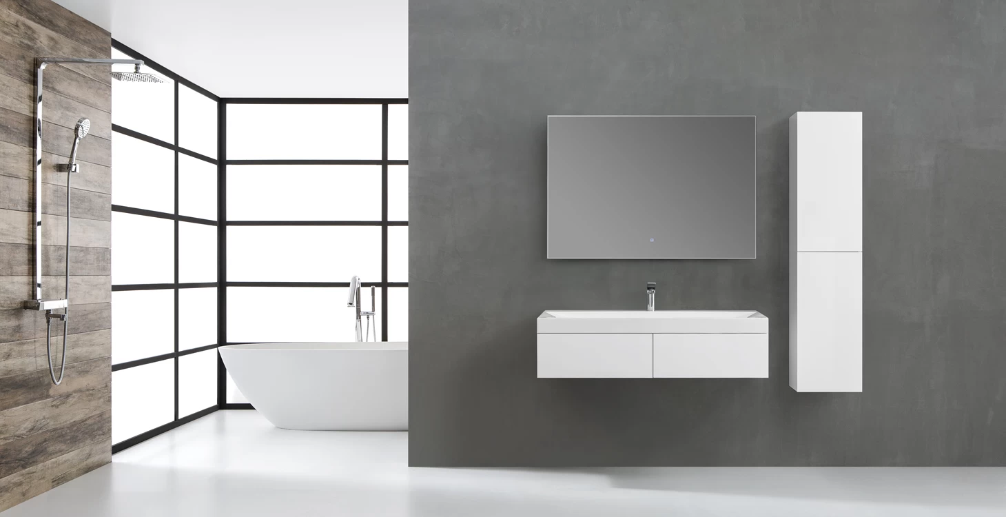Unsere Badmöbel werden ab Werk komplett vormontiert und stabile verpackt. Es ist kein mühsames Zusammenbauen mehr notwendig. Einfach aufhängen, ausrichten und fertig. So verwirklichen Sie schnell und komfortabel einen tollen Waschbereich in Ihrem Badezimmer.