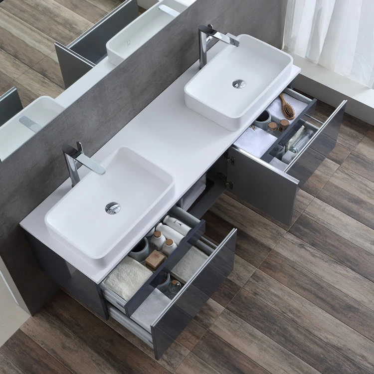 Der Waschtisch wird aus hochwertigem MDF (mitteldichte Holzfaserplatte) in einer Stärke von 18mm gefertigt. Die Produktion erfolgt auf extra dafür in Deutschland angefertigten Präzisionsmaschinen. Das Ergebnis ist eine optimale Oberfläche, ins besondere an den Kanten. Unsere Schubladen sind mit hochwertige SoftClose-Einzügen ausgestattet. Je nach Wunsch liefern wir Ihr neues Badmöbelset entweder modern in 3 Lackfarben (schwarz, dunkelgrau und weiß), oder klassisch in den Holzfarben Eiche hell und dunkel aus.
