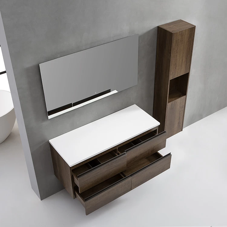 Der Waschtisch wird aus hochwertigem MDF (mitteldichte Holzfaserplatte) in einer Stärke von 18mm gefertigt. Die Produktion erfolgt auf extra dafür in Deutschland angefertigten Präzisionsmaschinen. Das Ergebnis ist eine optimale Oberfläche, ins besondere an den Kanten. Unsere Schubladen sind mit hochwertige SoftClose-Einzügen ausgestattet. Je nach Wunsch liefern wir Ihr neues Badmöbelset entweder modern in 3 Lackfarben (schwarz, dunkelgrau und weiß), oder klassisch in den Holzfarben Eiche hell und dunkel aus.