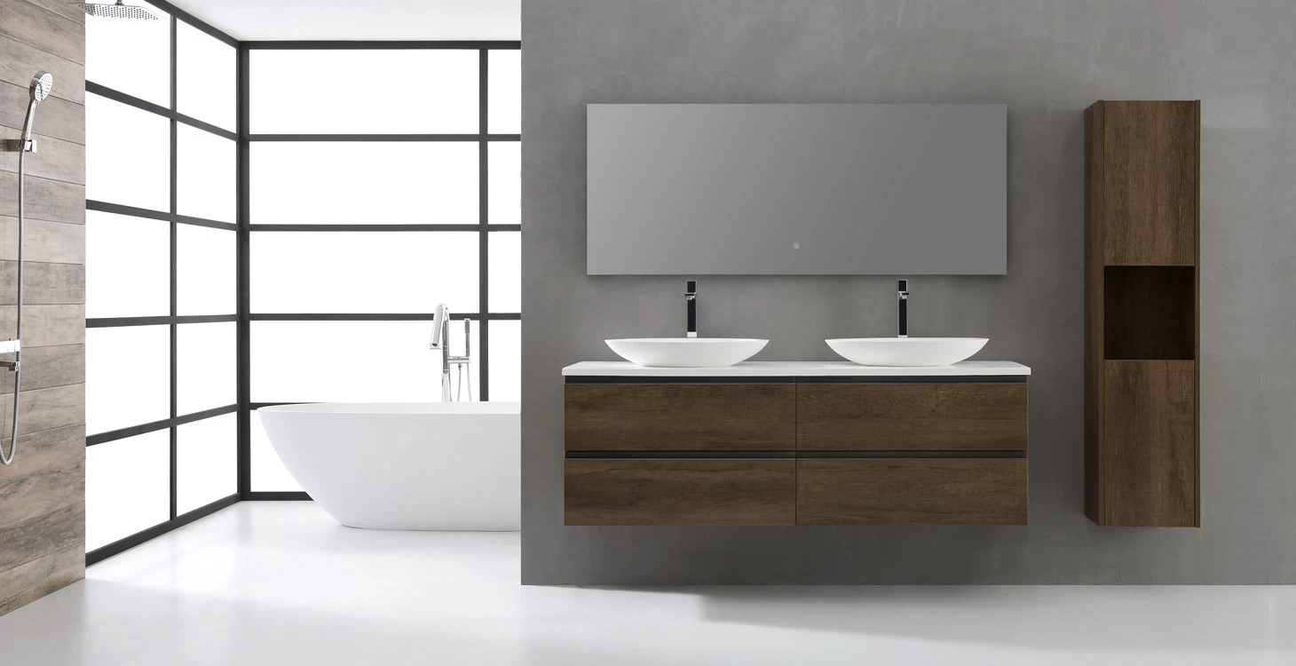 Unsere Badmöbel werden ab Werk komplett vormontiert und stabile verpackt. Es ist kein mühsames Zusammenbauen mehr notwendig. Einfach aufhängen, ausrichten und fertig. So verwirklichen Sie schnell und komfortabel einen tollen Waschbereich in Ihrem Badezimmer.