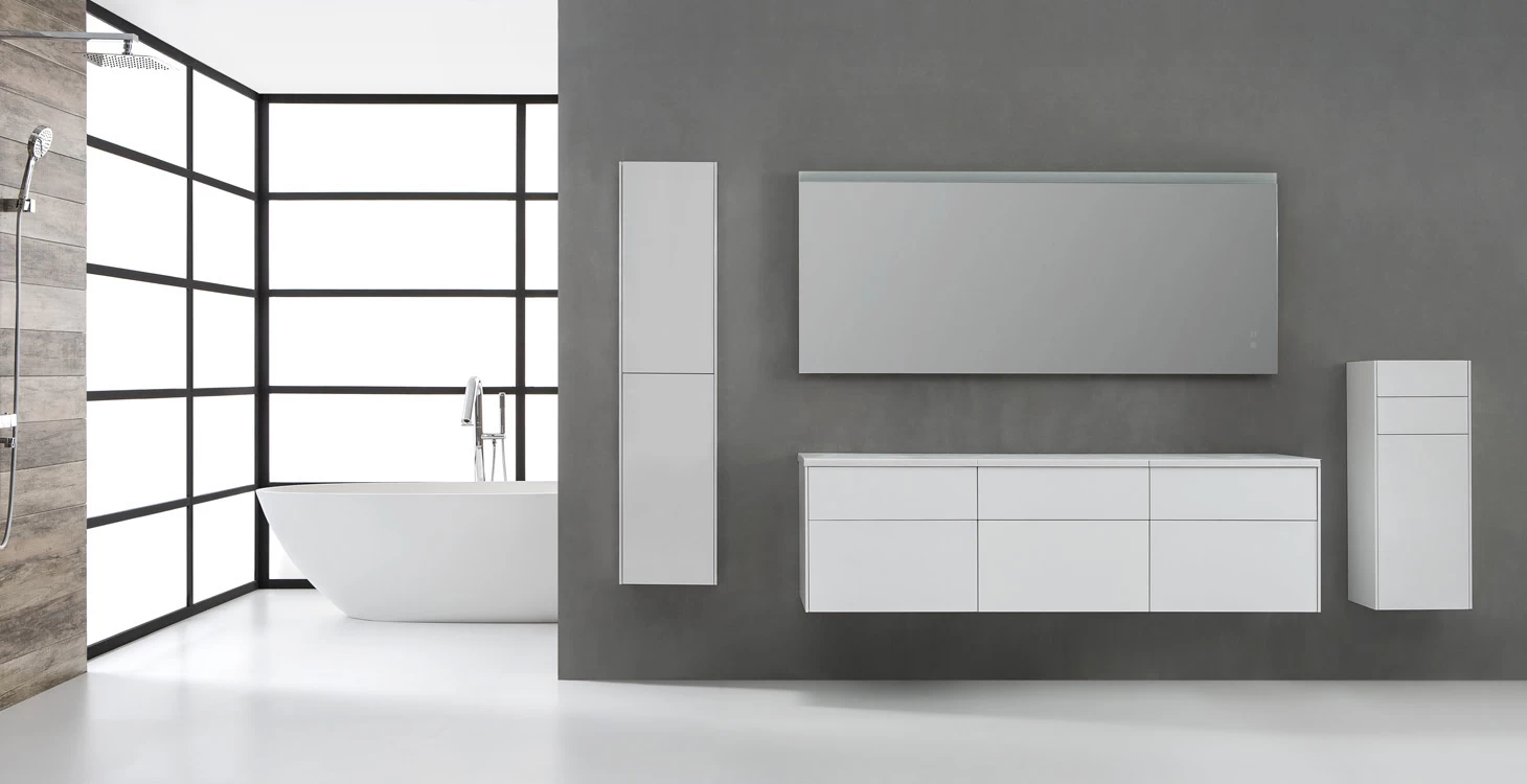 - Badmöbelset mit Arbeitsplatte aus Mineralguss in seidenglanz