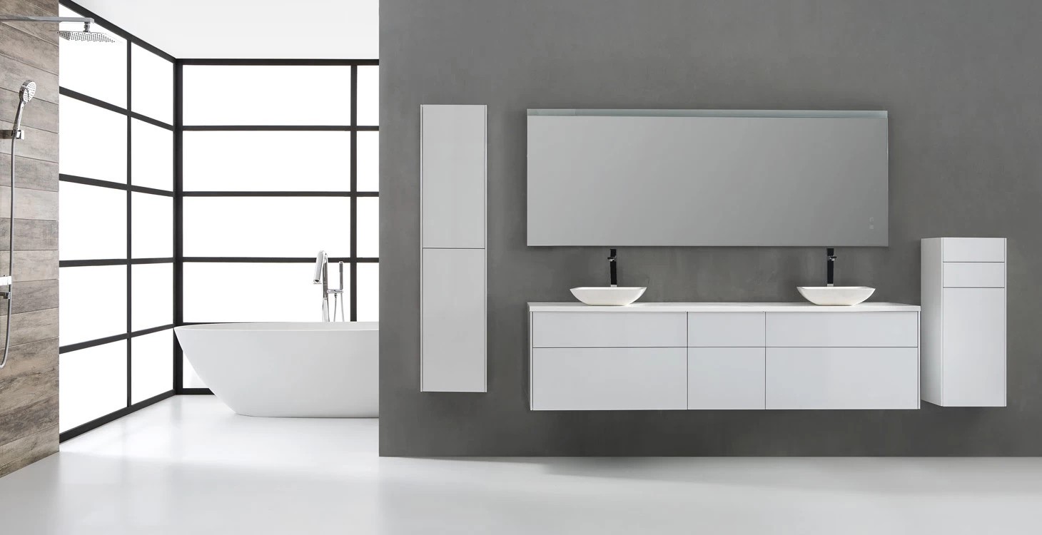 - Badmöbelset mit Arbeitsplatte aus Mineralguss in seidenglanz